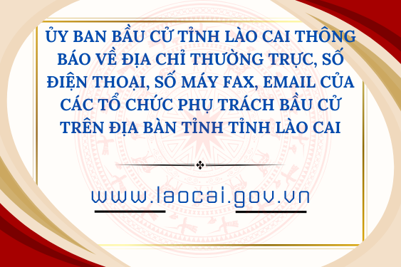 Ủy ban bầu cử tỉnh Lào Cai thông báo về địa chỉ thường trực, số điện thoại, số máy fax, email của...